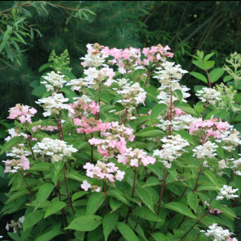 'Dharuma' is a dwarf selection of Hydrangea paniculata that delivers big beauty in a small package. It produces upright clusters of creamy white flowers in early summer, which mature to soft shades of pink and light burgundy. Its tidy growth habit and sturdy stems make it an excellent choice for containers, borders, and small landscapes.