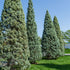 Arizona Sapphire Tree is a compact evergreen with soft, silvery-blue foliage and a dense pyramidal form. Perfect for windbreaks, privacy, or landscape contrast. Extremely low-maintenance and drought-tolerant.