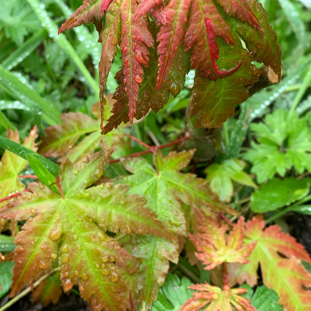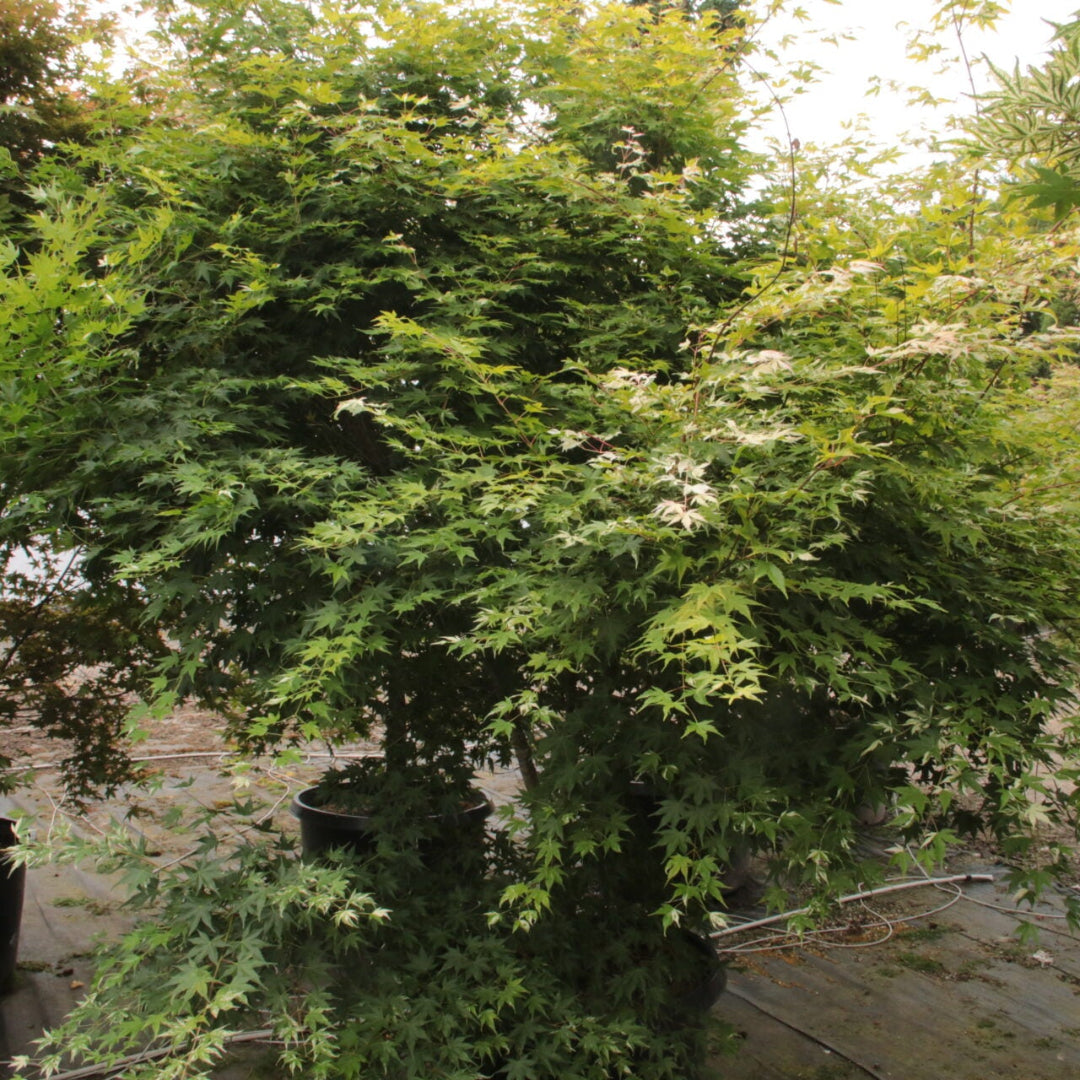 - (3 Gallon) Asahi-Zuru (Orido-Nishiki) Acer palmatum, Gorgeous Deep Pink and white variegation in Spring, followed by pink, white and green foliage until fall. Asahi zuru means Rising Sun. The variegation is creamy-white with pink in spring. Bark tends to have pink striations through out, especially on newer bark. Fast growing when young, this nice maple will eventually produce a spreading plant with the variegation becoming more intense with age. Its bark also carries variegation of creamy white and pink. The Autumn color is reddish-maroon.