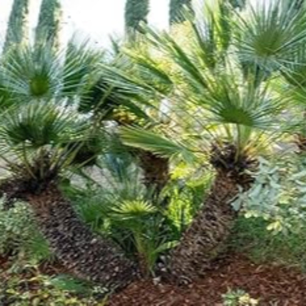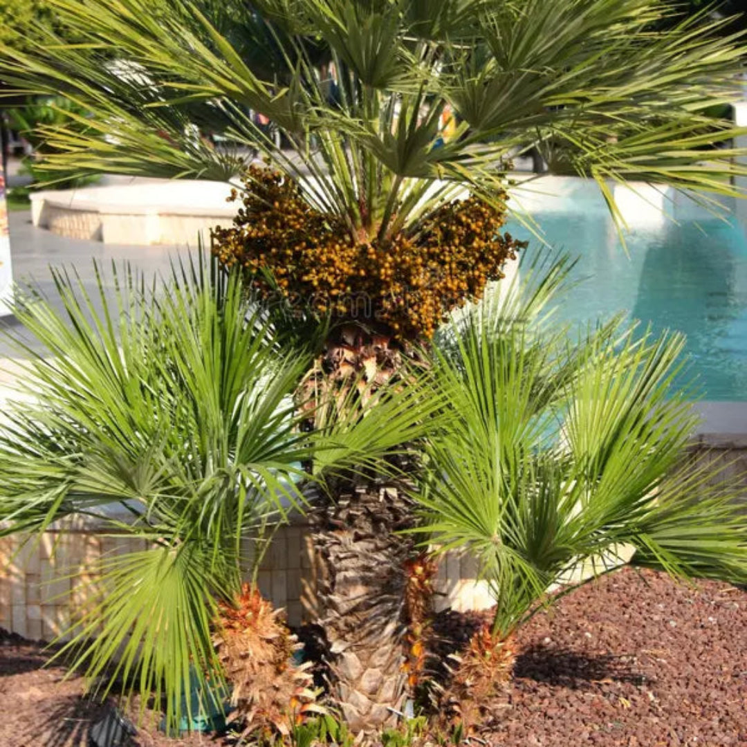 The European Fan Palm (Chamaerops humilis) is one of the toughest and most versatile palms you can grow. Known for its clumping, multi-trunk growth habit and fan-shaped fronds, it creates a lush, tropical vibe even in cooler regions.