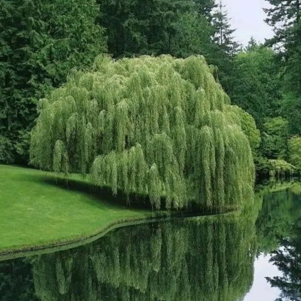 Its narrow, light green leaves flutter in the breeze, creating a soothing atmosphere. Fast-growing and adaptable, the Weeping Willow thrives in moist soil and offers shade, beauty, and year-round visual interest in the garden.